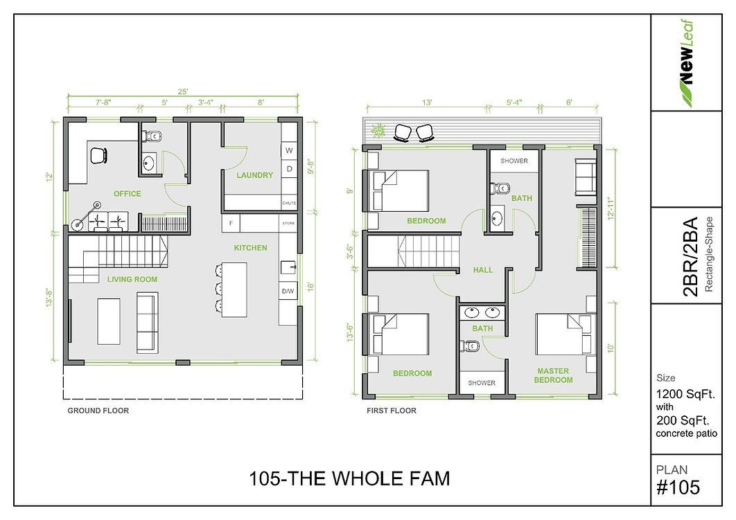 105 – The Whole Fam | 2–3 Bed · 2 Bath · 1,400 SF (Custom Home)