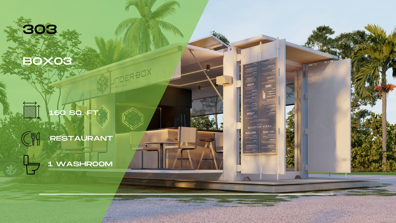 303 – Box 03 Restaurant with Patio, 1 x 20 ft (Container Home)